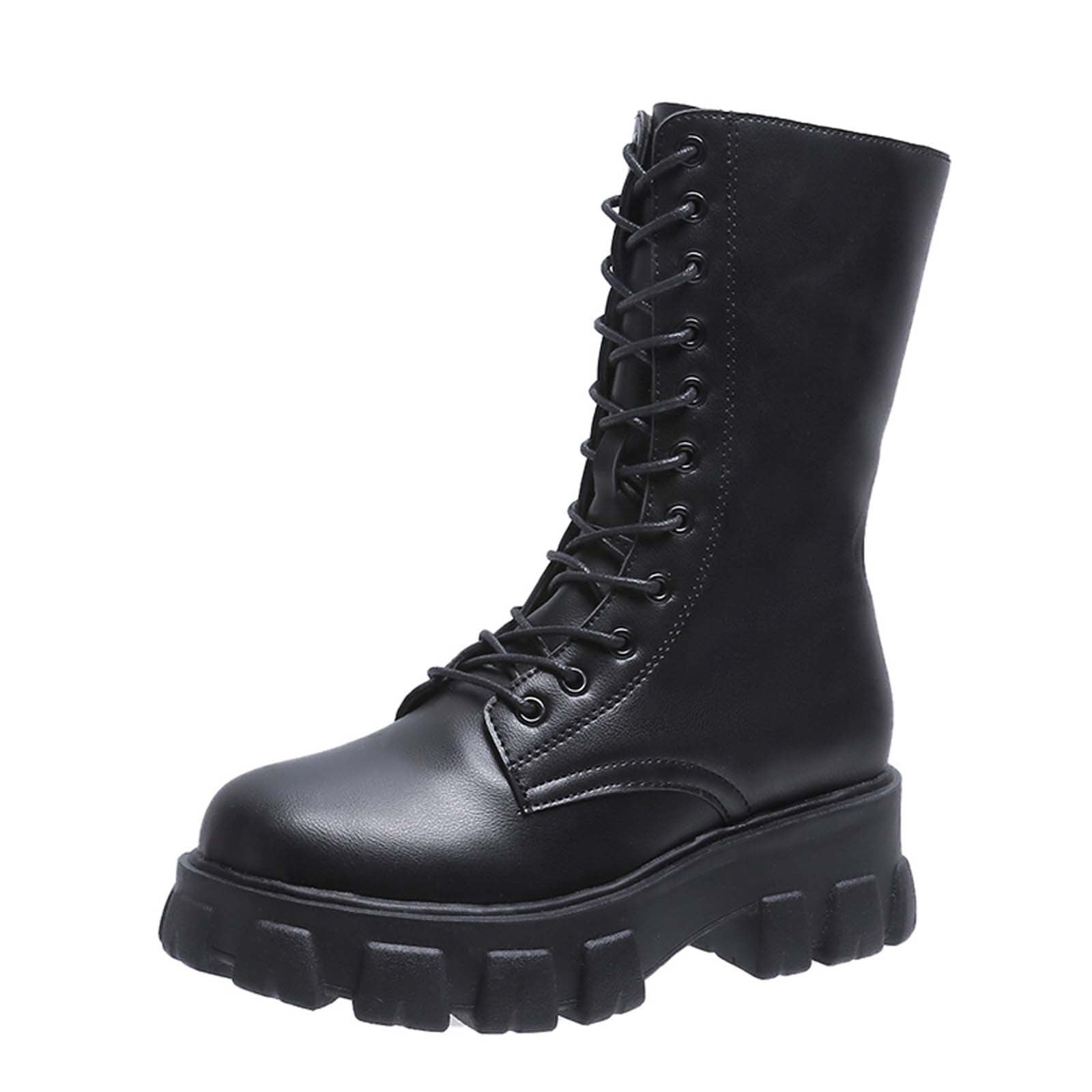 Bnwani Shoes Snadals And Slippers For Women Women S Round Toe Platform Boots With Lace Up Motorcycle Boots Mid Tube Boots Ladies Fashion Increased Comfy Shoes Walmart Com